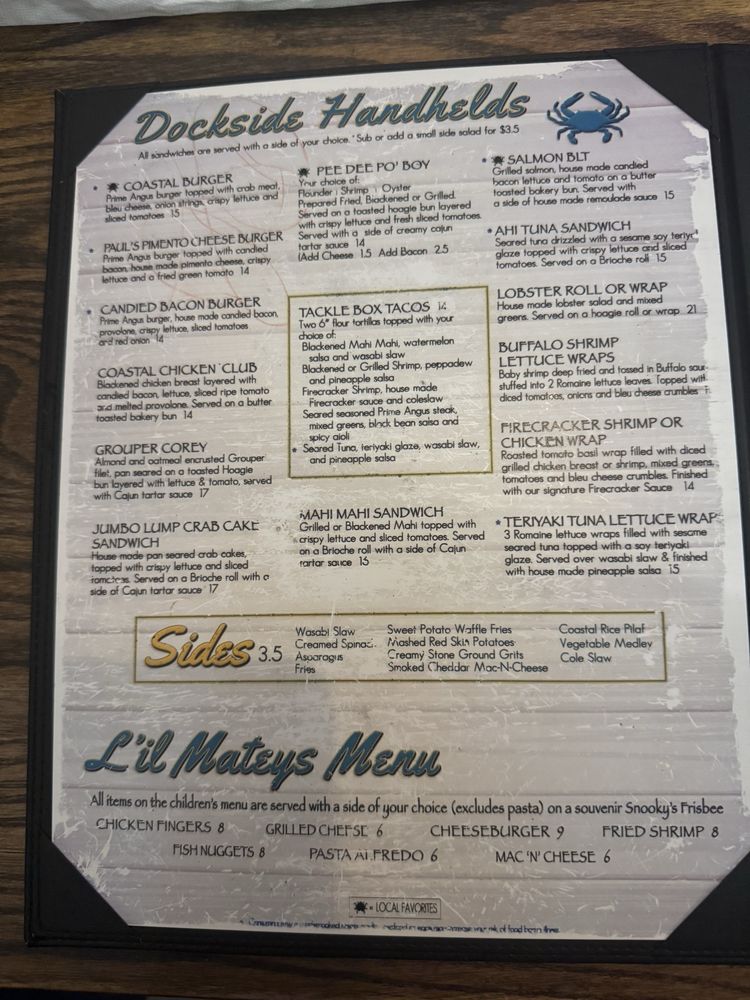 Guests can indulge in creative appetizers like fried green tomatoes or calamari, while families appreciate the unique kids' meals served on frisbees, complete with crayons for entertainment. With both indoor and outdoor seating options that provide direct ocean views, Snooky's is a popular spot for casual gatherings. Happy hour is a must-try, showcasing an array of tantalizing dishes at friendly prices.